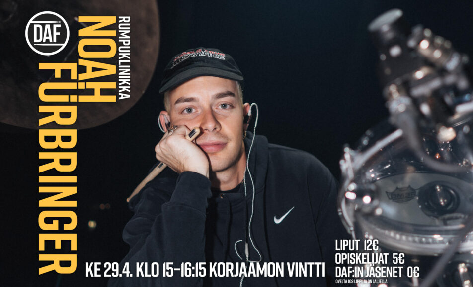 Ke 22.4.2026 Kulmasali, Korjaamo Ovet klo 18 Eka esiintyjä 18.30 Vapaa pääsy Ikärajaton ja päihteetön Esteetön Huhtikuun Äänet on vuoden sykähdyttävin soittotempaus, joka järjestetään Kulttuuritehdas Korjaamolla kaupungin melskeen keskellä! Lavalle nousevat huikeat Alppilan, Vuosaaren, Konepajan sekä Vaskivuoren lukion bändit. Sisäänpääsy...
