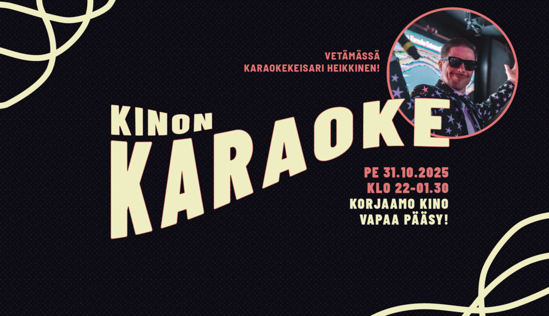 Ensimmäinen Kinon Karaoke järjestetään lauantaina 31.10. klo 22-01.30 ja vetämässä on kuka muukaan kuin Karaokekeisari Heikkinen! Karaokeen on vapaa pääsy, ja juontaja ottaa biisitoiveita vastaan heti klo 22 alkaen. Tervetuloa!