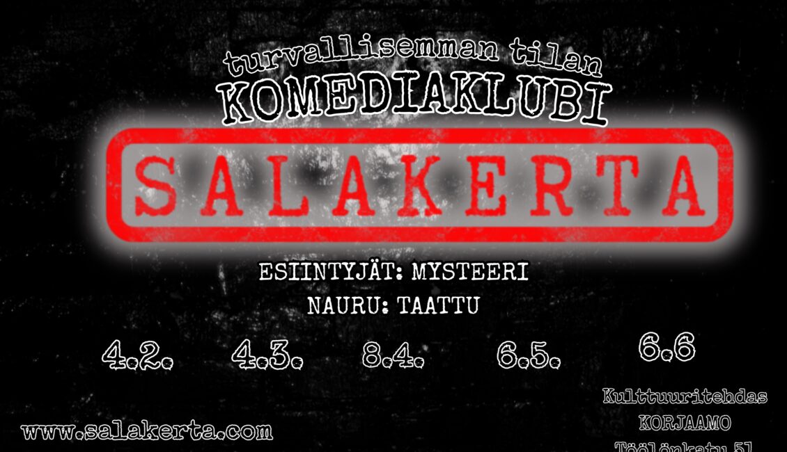 Tervetuloa turvallisemman tilan komediaklubille, Salakertaan.