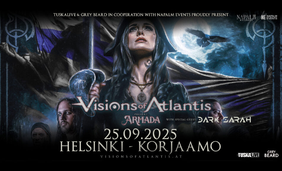 TuskaLive ja Grey Beard esittävät: Sinfonisen metallin airut Visions of Atlantis Helsinkiin ja Tampereelle syyskuussa – lämppärinä toimii suomalainen Dark Sarah To 25.9.2025 Vaunusali Liput lippu.fi: alk. 42,10€ + tilausmaksut Ovet 19:00, Dark Sarah 19:30 Visions of Atlantis 20:30 K-18...