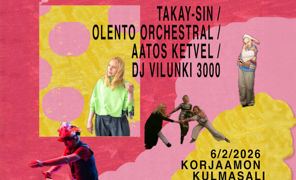 Takay-Sin, Olento Orchestral ja Aatos Ketvel täyttävät Kulmasalin väkevällä musiikilla ja runollisilla, leikittelevillä lyriikoilla. Legendaarinen DJ Vilunki 3000 lisää kierroksia! Pe 6.2.2026 Kulmasali Liput: ennakkoon 18 € / ovelta 20 € 19:00 ovet 19:30 Olento Orchestral 20:30 Aatos Ketvel 21.30...