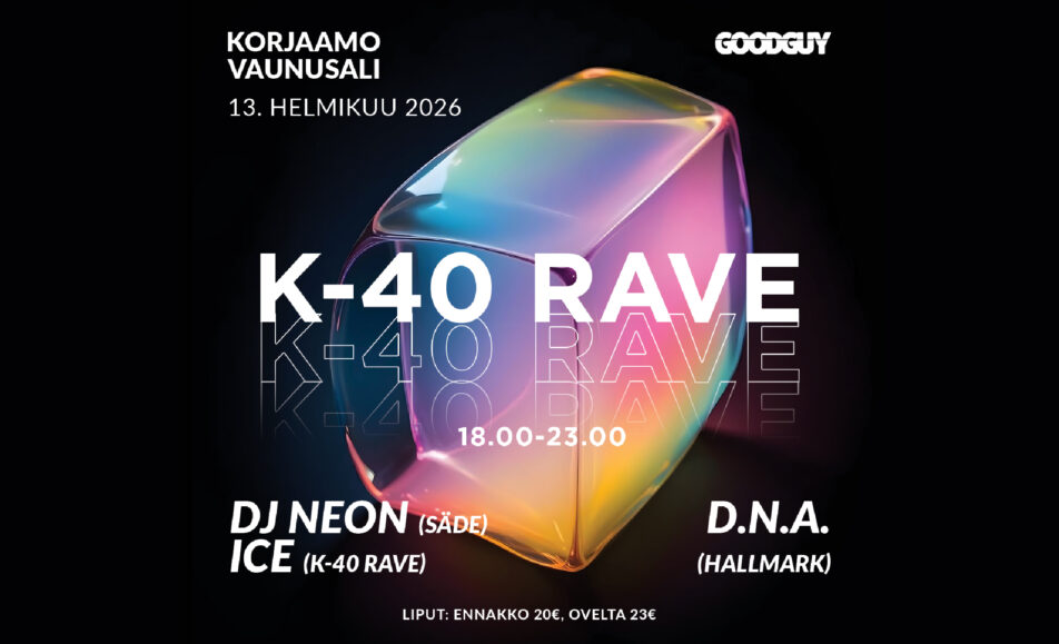 K-40 Rave – reivit aikuisille sopivaan aikaan! Pe 13.2.2026 Vaunusali Liput: Ennakkoon lippu.fi:stä 20 € / Ovelta 23€ Klo 18.00–23.00 K18 K-40 Rave tuo klubikulttuurin sykkeen ja konemusiikin energian aikuisempaan aikaan. Näissä juhlissa meininki on kovaa alusta lähtien – ilman...